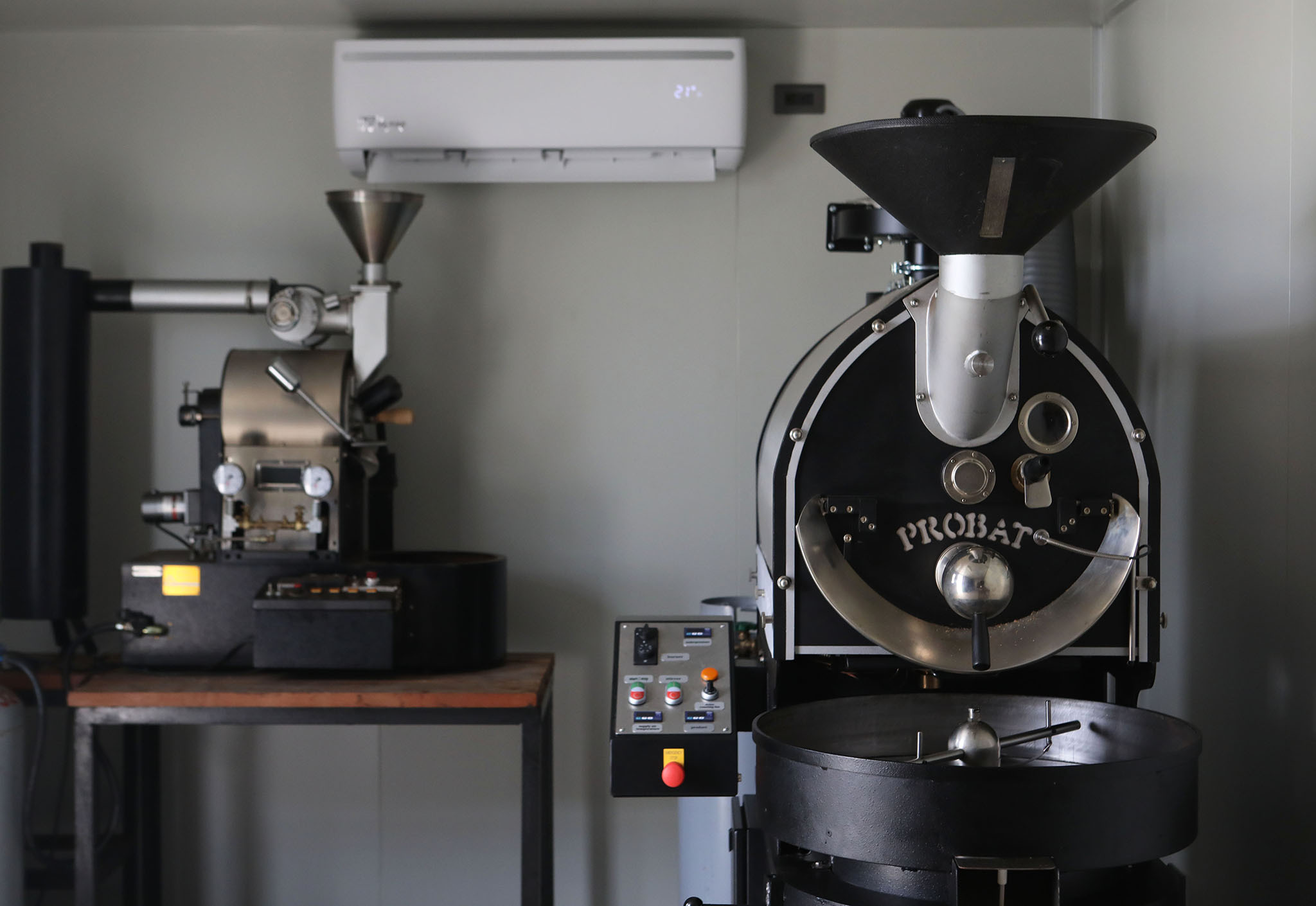 我們使用了Probat L5的改裝烘豆機,保有復古的造型,現代的機能。鑄鐵鍋爐的特色,為我們提供的咖啡豆增添了焦糖香氣與奶油滑順的口感 。